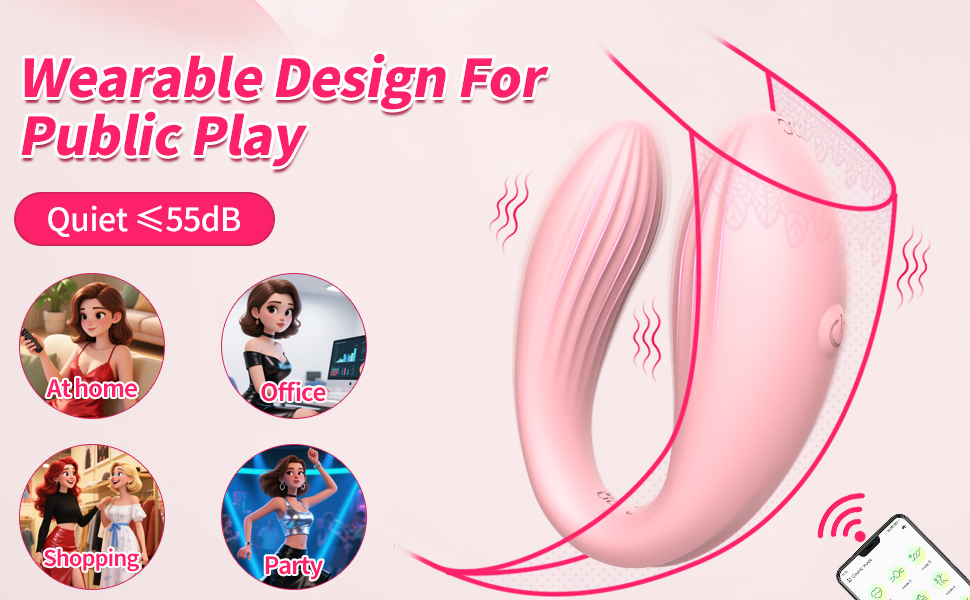 • 【Wearable & Discreet in Public】Your discreet wearable pleasure companion. With a whisper-quiet sound level of 55dB, our discreet vibrator is perfect for public enjoyment for a naughty date night. Its compact design fits seamlessly into your travel bag, ensuring pleasure on the go. This couples vibrator designed with a smooth, streamlined curved shape for easy grip, perfectly fit your intimate area